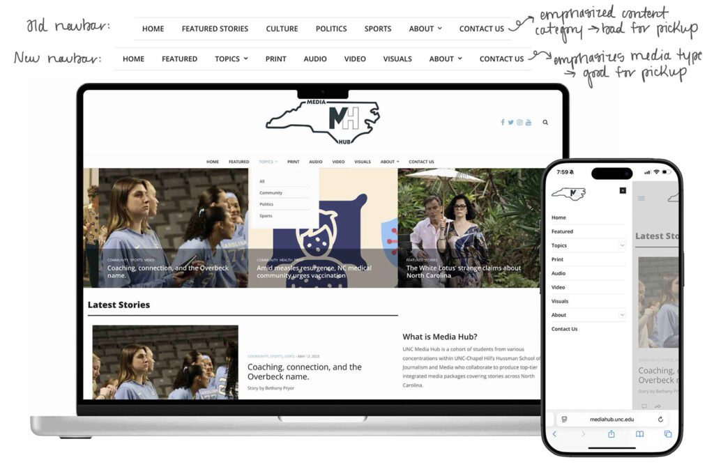 - Redesigned the site’s navigation to prioritize media formats—print, audio, video, graphic—making it easier for media outlets to find content by type, the primary use case of the site (because most news outlets directly partnered with us specialize in a particular media type, and therefore browse our site accordingly).