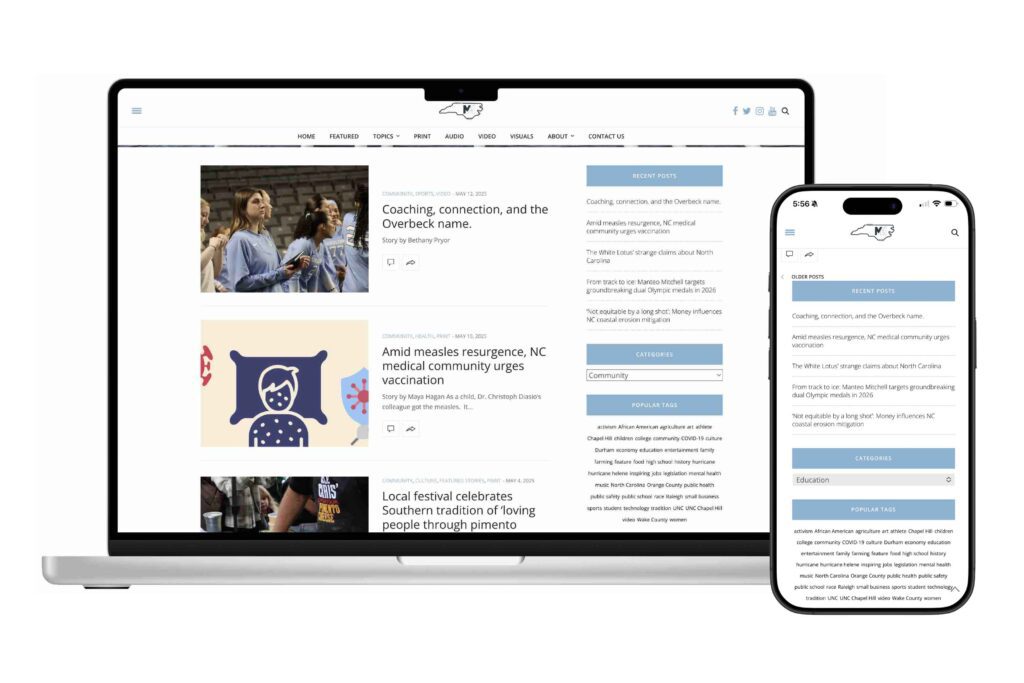- Used custom CSS to include brand’s styling site-wide, such as Carolina-blue headings, social icons, hover features, buttons, and more.